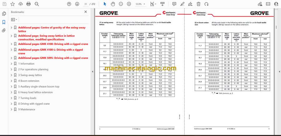 Grove GMK4100, GMK4100-L, GMK5095 Crane Index:
