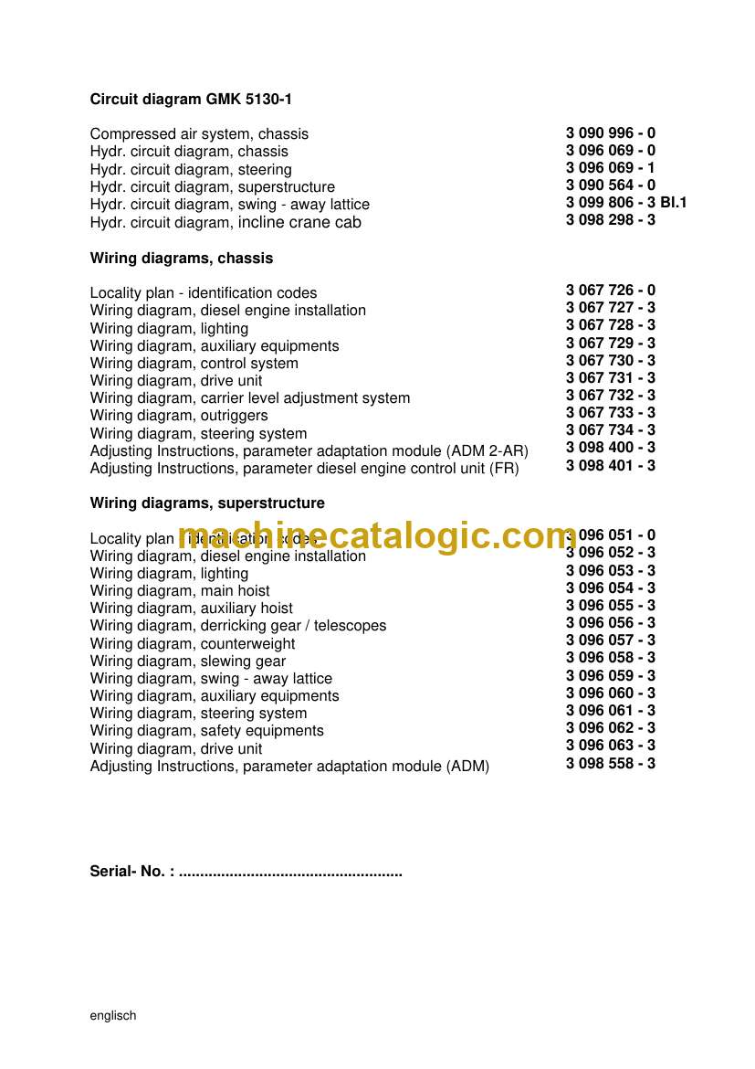 Wiring diagram, derricking gear / telescopes