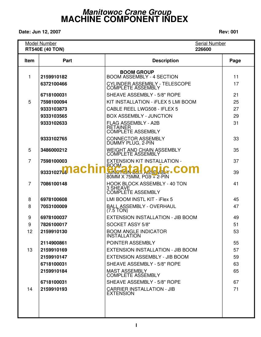 MACHINE COMPONENT INDEX
