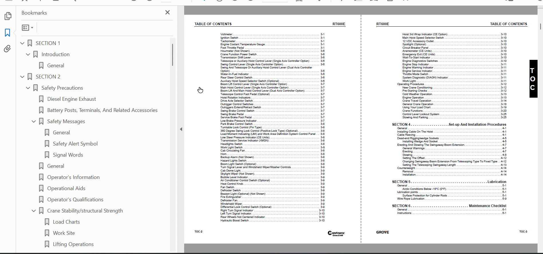 Grove RT600E Crane Operators Manual (CTRL088-00)