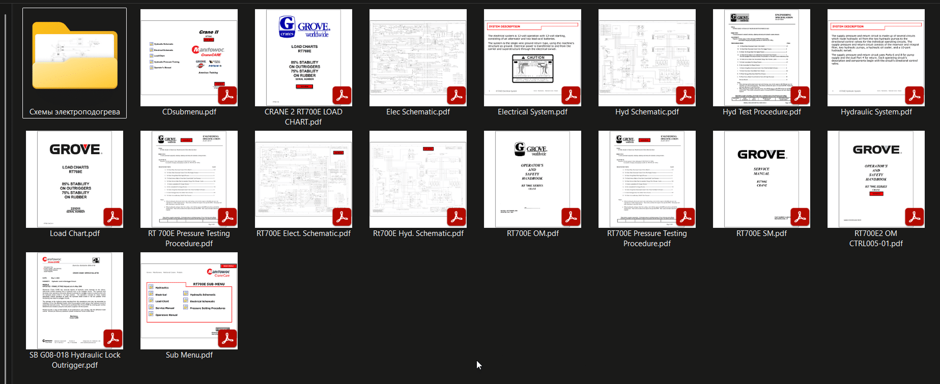 Grove RT600E Crane Service, Operators Manual, Load Chart, Schematics, Technical Training