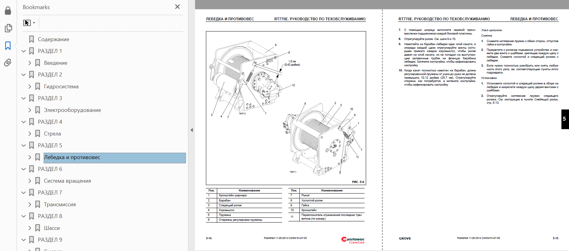 Grove RT770E Crane Manuals (Operator Manual (RU), Service Manual (RU), Load Charts (RU), Parts Manual)