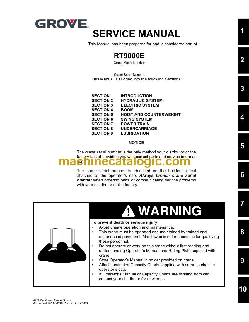 Grove RT9000E Crane Service Manual (077-00)