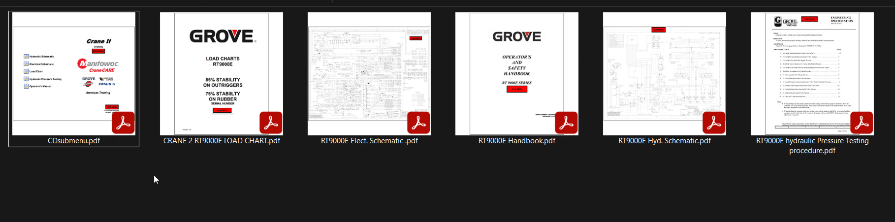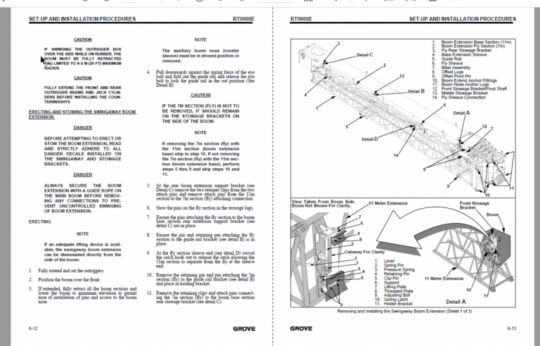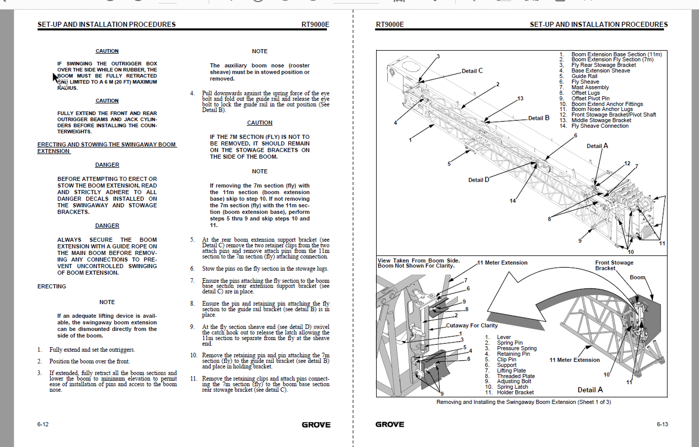 Grove RT900E Crane Operators Manual, Load Chart, Schematics, Technical Training