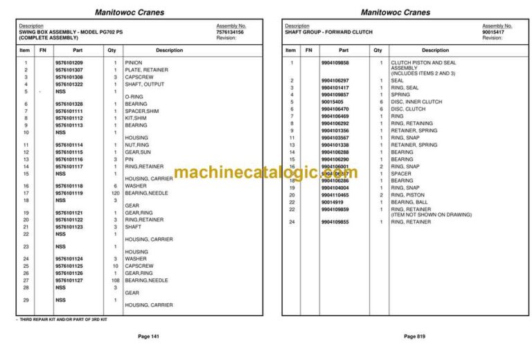 Grove RT9130E Crane Parts Manual