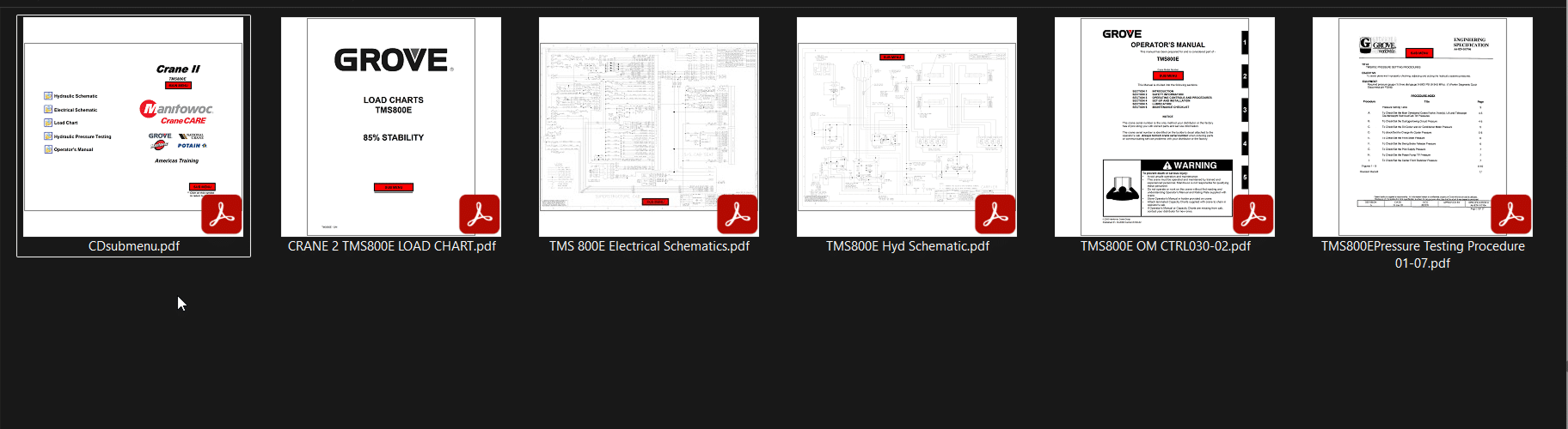 Grove TMS800E Crane Operators Manual, Load Chart, Schematics, Technical Training