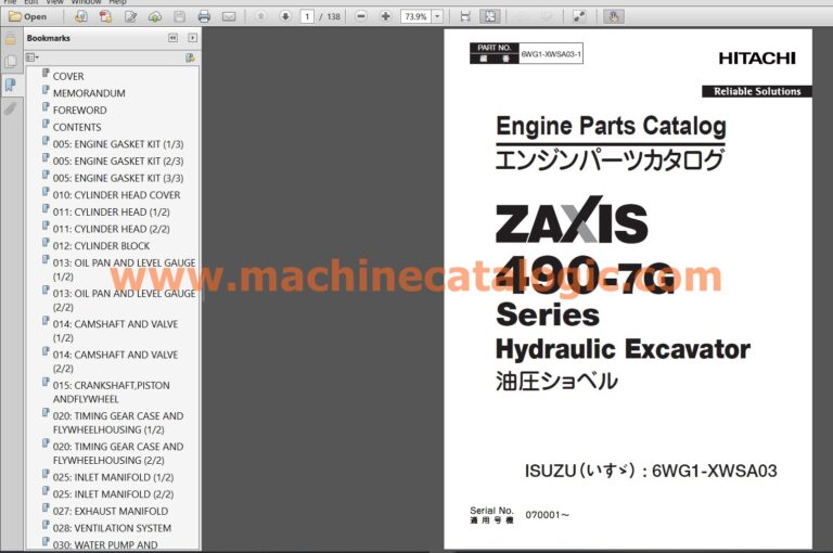 Large & Mining Excavator Parts Catalog and Engine Parts Catalog 2024 Index