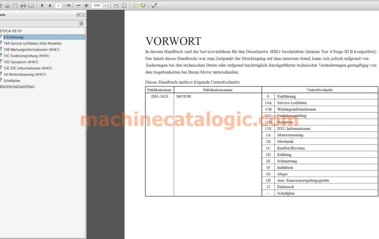 Hitachi 4HK1 Interim Tier 4 – Stage III B – Motorhandbuch & Technisches Handbuch (Deutsch, PDF)
