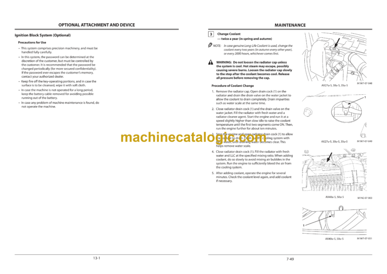 Hitachi AX27u-5,AX30u-5,AX35u-5,AX40u-5,AX50u-5 Mini Excavator Instruction Manual (EM1NEA-1-2)