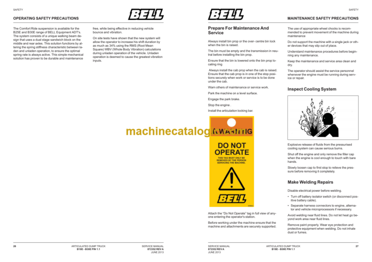 Hitachi BELL E-SERIES ADT – B18E – B30E Articulated Dump Truck Service Manual
