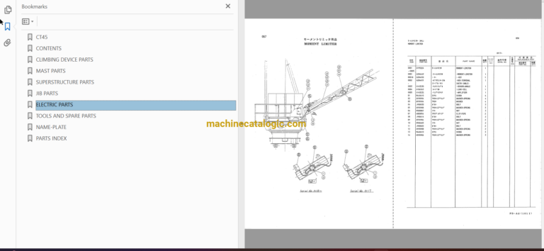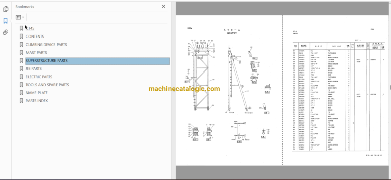 CLIMBING DEVICE PARTS MAST PARTS SUPERSTRUCTURE PARTS JIB PARTS ELECTRIC PARTS TOOLS AND SPARE PARTS NAME-PLATE PARTS INDEX