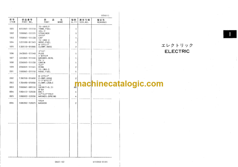 Hitachi CD5B, CD5PB, CD5PLB Bulldozer INDEX: