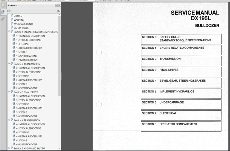 Bulldozer, Crawler Tractor and Dozer Service Manual Index