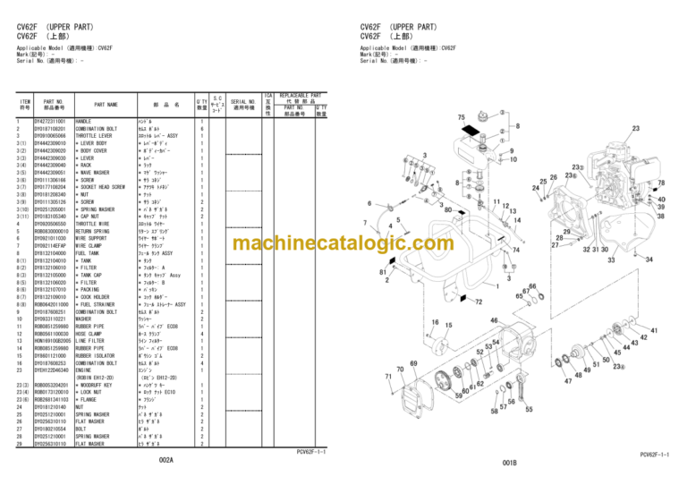 Hitachi CV62F, CV62X, CV62H Vibratory Rammer Parts Catalog