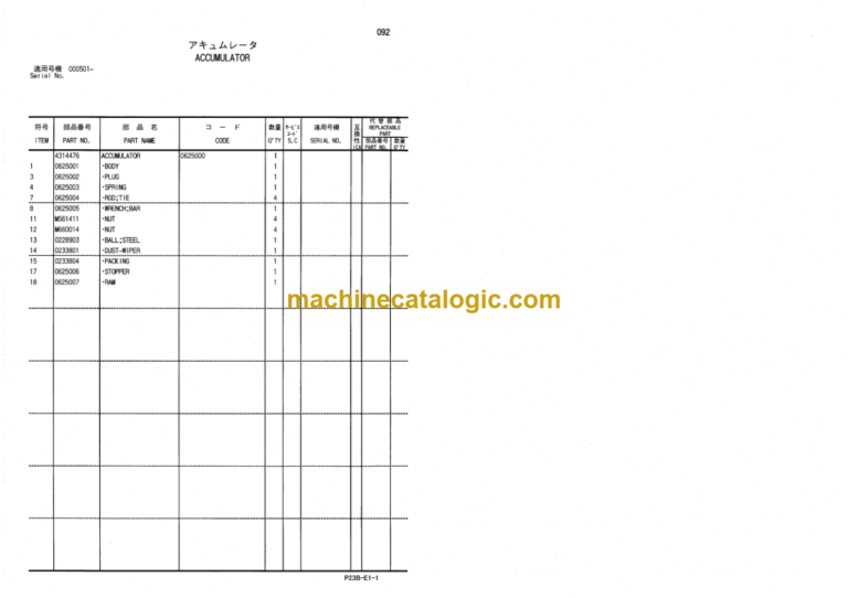 PUMP MOTOR ; OIL VALVE ; CONTROL VALVE ; PILOT VALVE CYLINDER ETC. PARTS INDEX