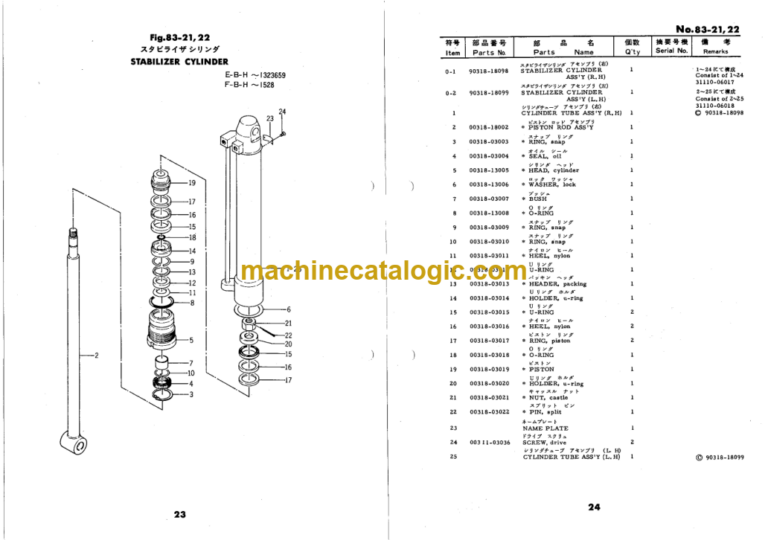 Hitachi EBH, FBH, GBH, HBH Backhoe Parts List