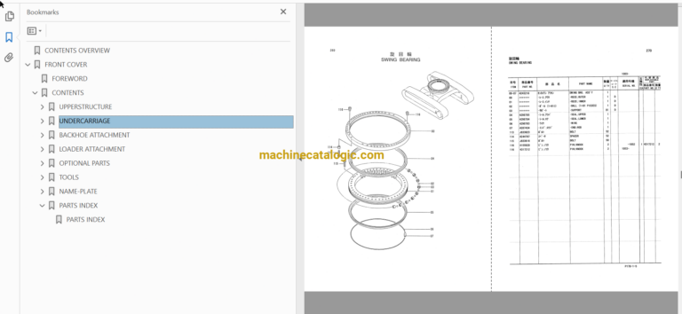UPPERSTRUCTURE UNDERCARRIAGE BACKHOE ATTACHMENT LOADER ATTACHMENT OPTIONAL PARTS TOOLS NAME-PLATE PARTS INDEX