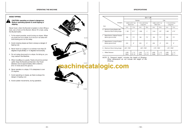Hitachi EX16-2B, EX17-2B, EX22-2, EX30-2, EX35-2, EX40-2, EX45-2 Excavator Operator’s Manual (H4002903E)
