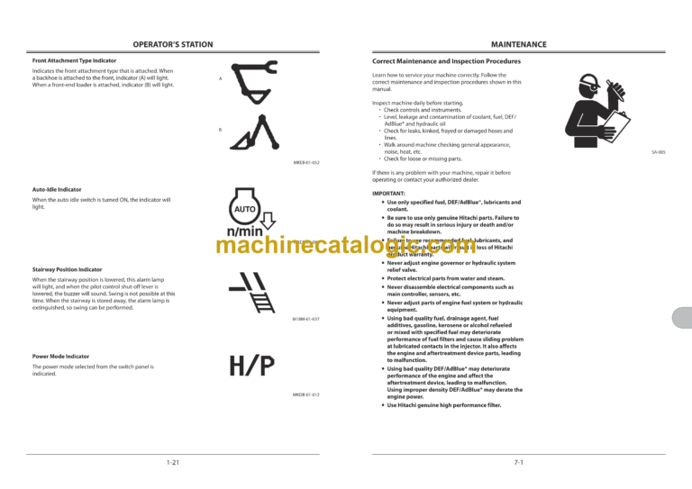 Hitachi EX2000-7B Cummins Tier 4 Final Engine Hydraulic Excavator Operator’s Manual (ENMKDB-1-1)