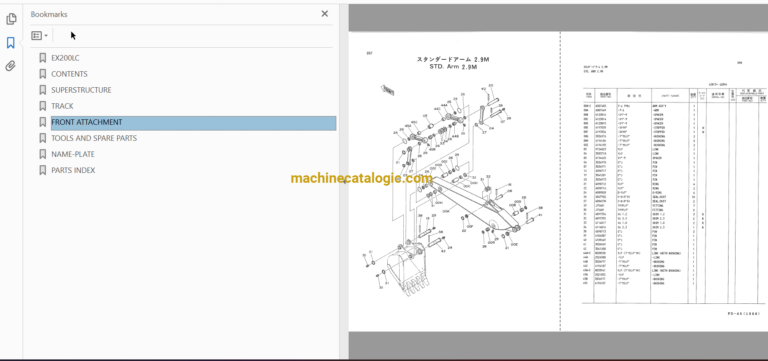 SUPERSTRUCTURE TRACK FRONT ATTACHMENT TOOLS AND SPARE PARTS NAME-PLATE PARTS INDEX