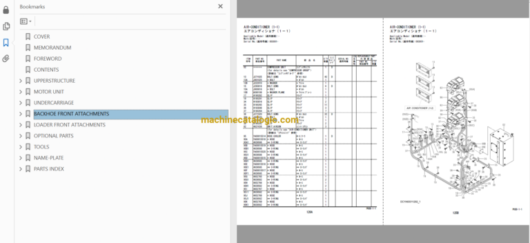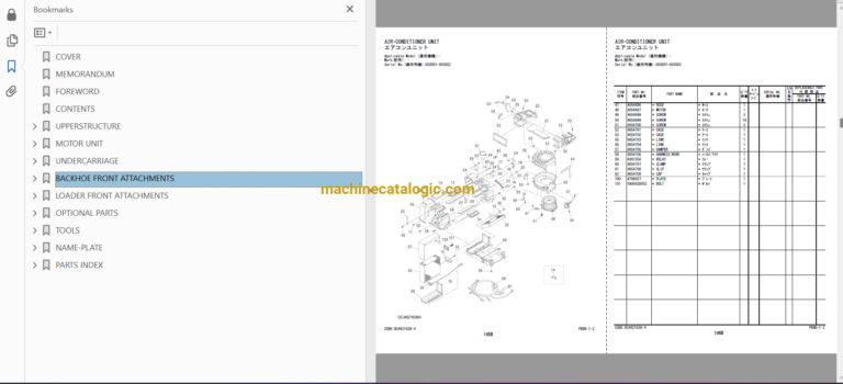 UPPERSTRUCTURE MOTOR UNIT UNDERCARRIAGE BACKHOE FRONT ATTACHMENTS LOADER FRONT ATTACHMENTS OPTIONAL PARTS TOOLS NAME-PLATE PARTS INDEX