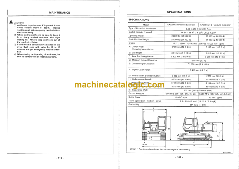 Hitachi EX300-2,EX300LC-2,EX300H-2,EX300LCH-2 Excavator Operator’s Manual (EM15K-1-1, EM15K-1-2)