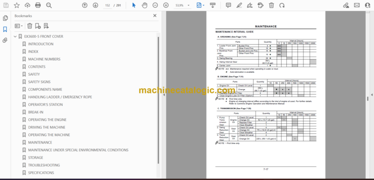 Hitachi EX3600-5 CUMMINS ENGINE SPEC. Excavator Index: