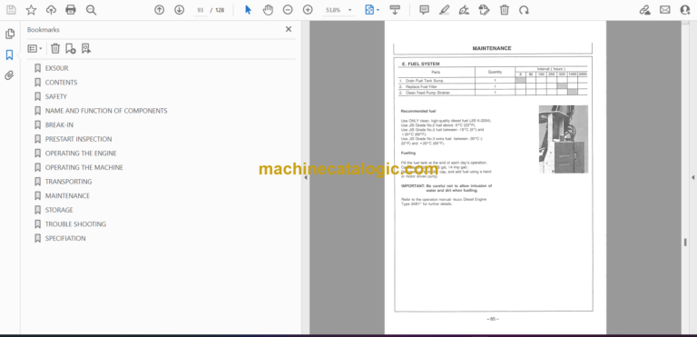 Hitachi EX50UR Excavator Operator’s Manual (EM10E-1-1, EM10E-1-2)