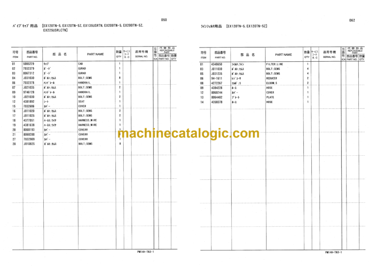 Hitachi EX60TN-3, EX60TN-5, EX100TN-5, EX120TN-5, EX135USRTN, EX200TN-5, EX225USRLCTN, EX300TN-3 Parts Catalog
