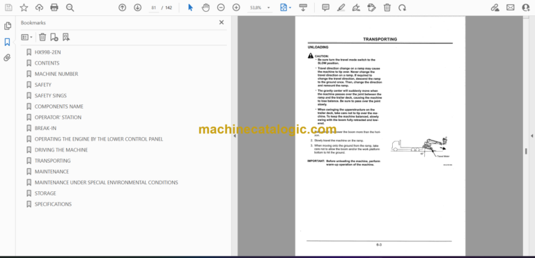 Hitachi HX99B-2EN Excavator Operator’s Manual (EM1M3-EN1-1)