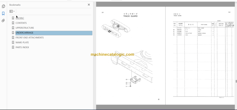 Hitachi JD230LC Excavator Parts Catalog & Equipment Components Parts Catalog