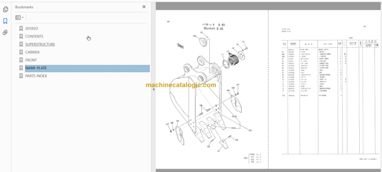 JD595D Wheeled Hydraulic Excavator Parts Catalog & Equipment Components Parts Catalog