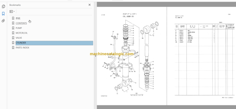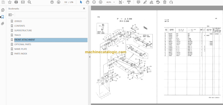 Hitachi JD992D Hydraulic Excavator Parts Catalog & Equipment Components Parts Catalog