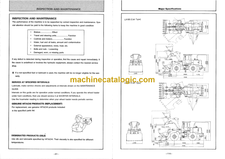 Hitachi LX100, LX150 Wheel Loader Operator’s Manual (EM41E-1-2)