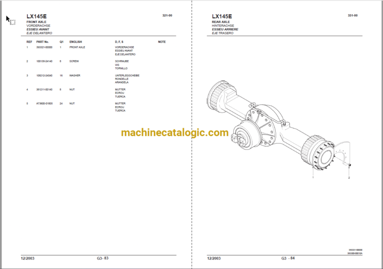 Hitachi LX145E-1 Wheel Loader Full Parts Catalog