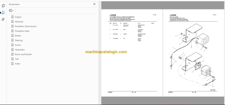 Engine Electrical Powerline Transmission Powerline Axles Brakes Steering Frame Hydraulics Boom and Bucket Cab Index