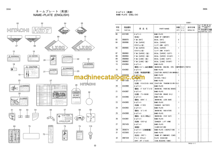 Hitachi LX80-2C Wheel Loader Parts Catalog