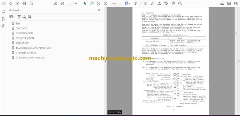 I.SPECIFICATION 2.CONSTRUCTlON 3.OPERATlON 4.MAlNTENANCE AND ADJUSTMENT 5.TRANSPORTATlON 6.TROUBLESHOOTlNG GUIDE