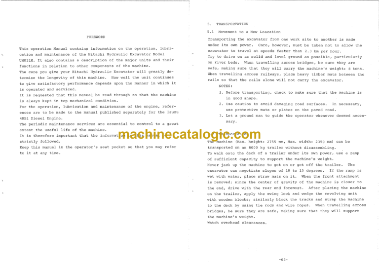 Hitachi UH031M Hydraulic Excavator Operator’s Manual (EM726-1-2)