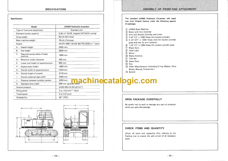 Hitachi UH043 Hydraulic Excavator Operator’s Manual (EM735-2-1, EM735-2-2, EM735-2-3)