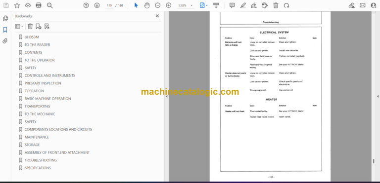 Hitachi UH053M Hydraulic Excavator Operator’s Manual (EM12B-3-1, EM12B-3-2, EM12B-3-3, EM12B-3-4)