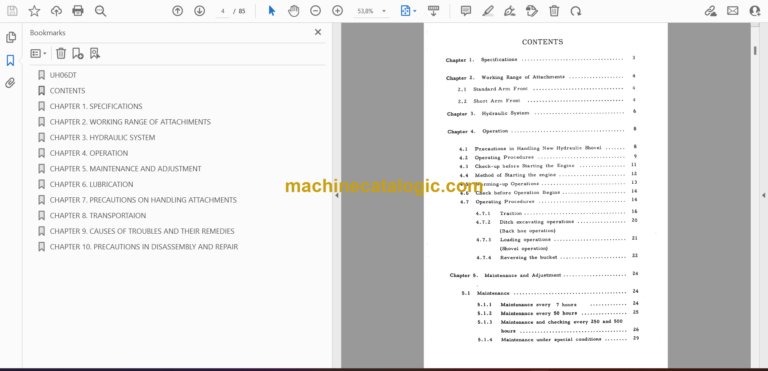 Hitachi UH06DT Hydraulic Excavator Perkins Operating Manual Service Manual (EM162-1)