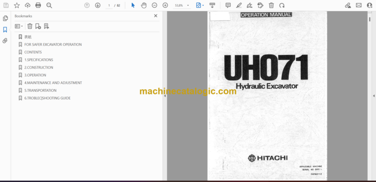 Hitachi UH071 Hydraulic Excavator Operator’s Manual (EM740-1-2)