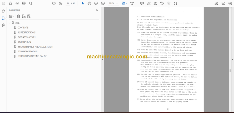 Hitachi UH081 Hydraulic Excavator Operator’s Manual (EM164-4-2, EM164-5-2, EM164-5-4, EM164-5-5, EM164-5-8)