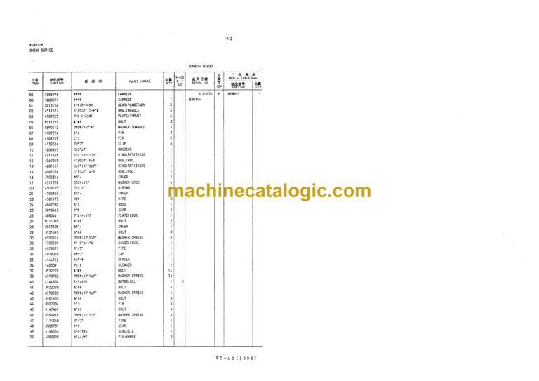 CONTENTS SUPERSTRUCTURE TRACK FRONT TOOLS AND SPARE PARTS OPTIONAL PARTS NAME-PLATE PARTS INDEX