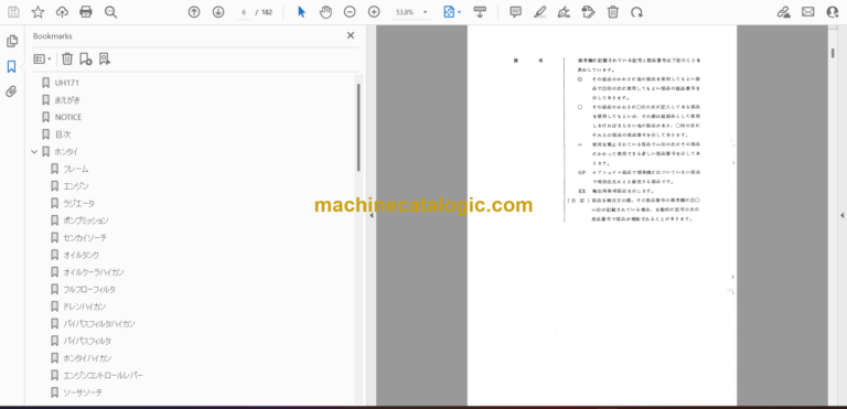 Hitachi UH171 Hydraulic Excavator Parts Catalog (EP123-1-2)
