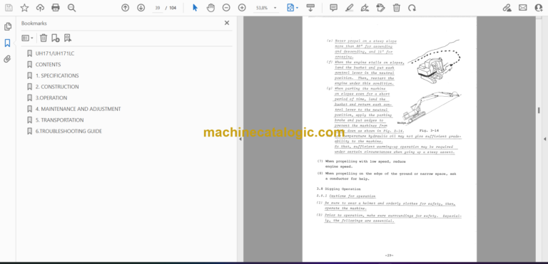 Hitachi UH171, UH171LC Hydraulic Excavator Operator’s Manual (EM123-1-6)