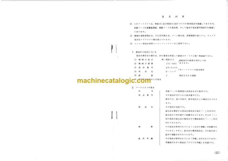 Hitachi WH051 WH051D Wheeled Hydraulic Excavator Parts Catalog