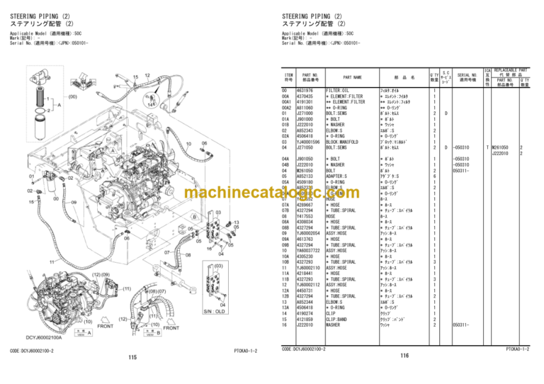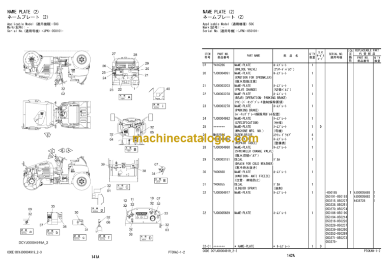 Hitachi ZC50C-5 ZC50T-5 Vibratory Roller Parts Catalog