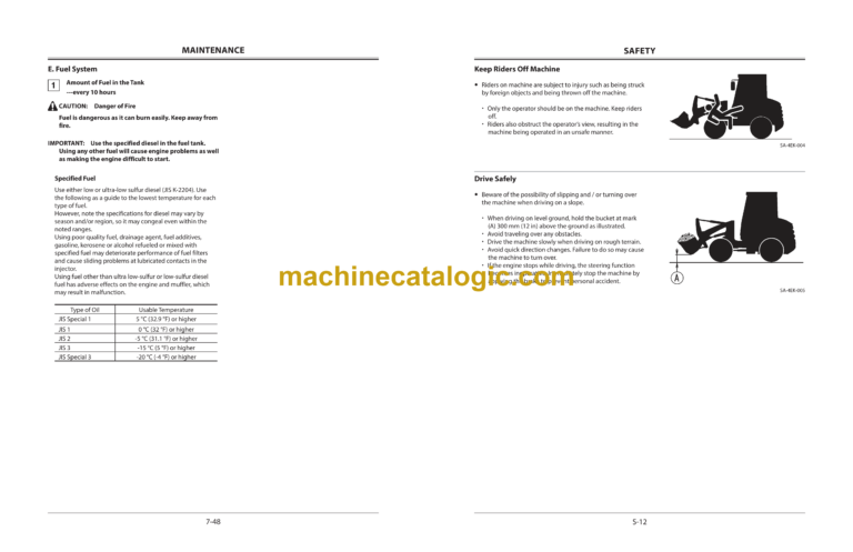 Hitachi ZW80-5B Wheel Loader Operator’s Manual (ENMNCH-NA1-4, ENMNCH-NA1-3)